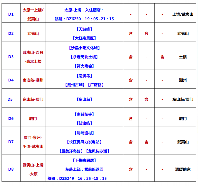 *    行程玩法 机场集合-飞往上饶                                                           今日未含餐-上饶/武夷山