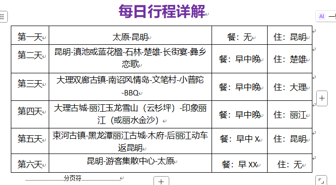 行程安排 打印行程