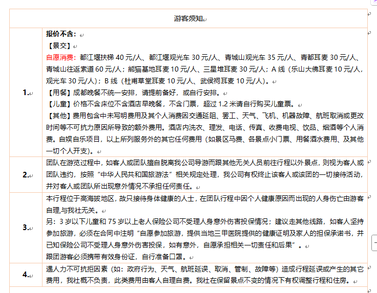 2. 导游可根据团上情况在不减少景点的情况下调整游览顺序。