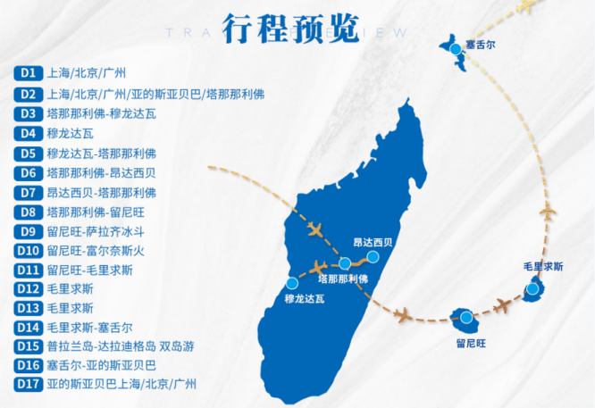 马达加斯加、留尼旺(法属)、毛里求斯、塞舌尔4国17天