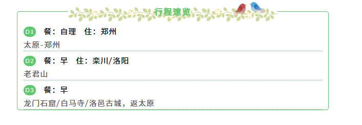4、午餐可以品尝当地团队餐35/人/餐(团队餐满8人可开餐),可自行选择,洛阳午餐可以品尝当地特色洛阳水席80/人或者团队餐35/人(团队餐满8人可开餐),可自行选择
