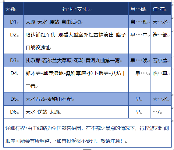 5.以上行程在景点不减少的情况下我社有保留调整游览顺序的权利;
