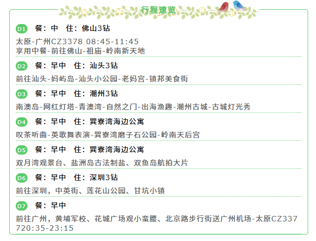 都市风光(深圳广州)+浪漫海滨(巽寮湾)+文化古城(潮汕)+生态海岛(南澳岛)