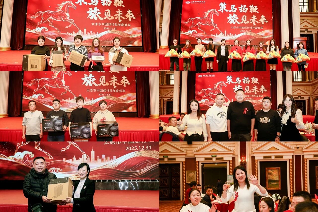 岁序更替,华章日新。太原市中国旅行社“策马扬鞭,旅见未来”年度盛典圆满落幕! 全体同仁与合作伙伴欢聚一堂,共忆耕耘之路,共话未来合作,共启崭新征程。一场融合荣誉、感恩与惊喜的盛会,在此刻定格成最温暖的记忆。